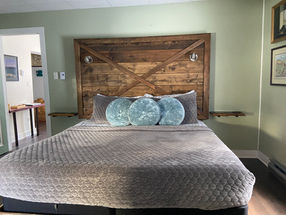 Apartment F: 1 bedroom/ 1 bath on the first floor with 650 Square feet and a beautiful king size bed. This spa like bathroom has a large whirlpool and small walk-in shower.